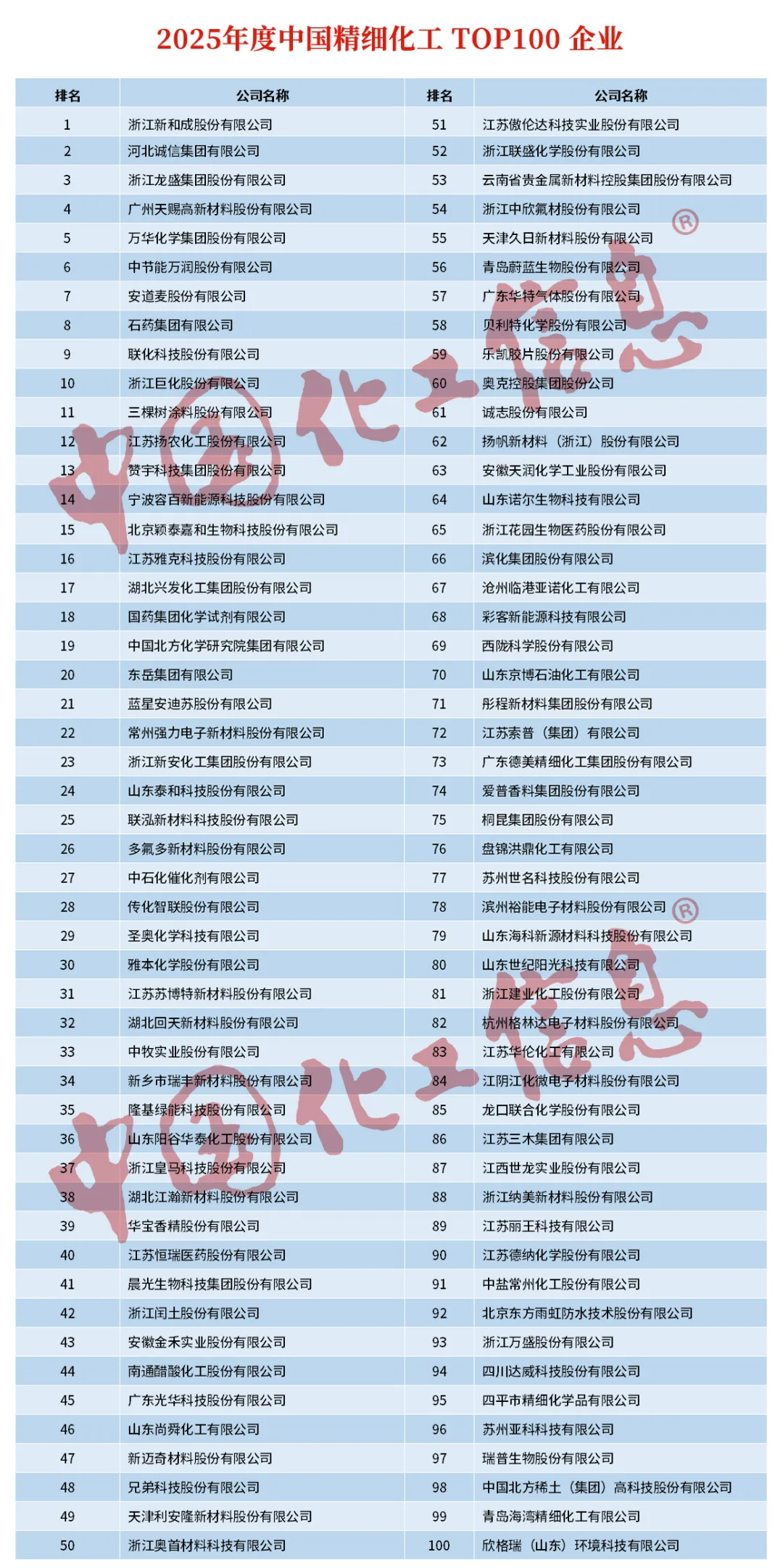 四家橡胶助剂企业荣登2025中国精细化工TOP100,两家斩获创新TOP10