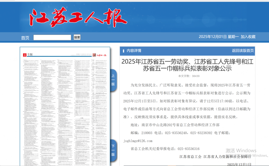 12月1日,江苏省总工会、江苏省人力资源和社会保障厅对2025年江苏省五一劳动奖、江苏省工人先锋号和江苏省五一巾帼标兵拟表彰对象进行了公示。其中,江苏麒祥高新材料有限公司光荣成为2025年江苏省五一劳动奖状拟表彰单位之一,目前已顺利通过公示期!