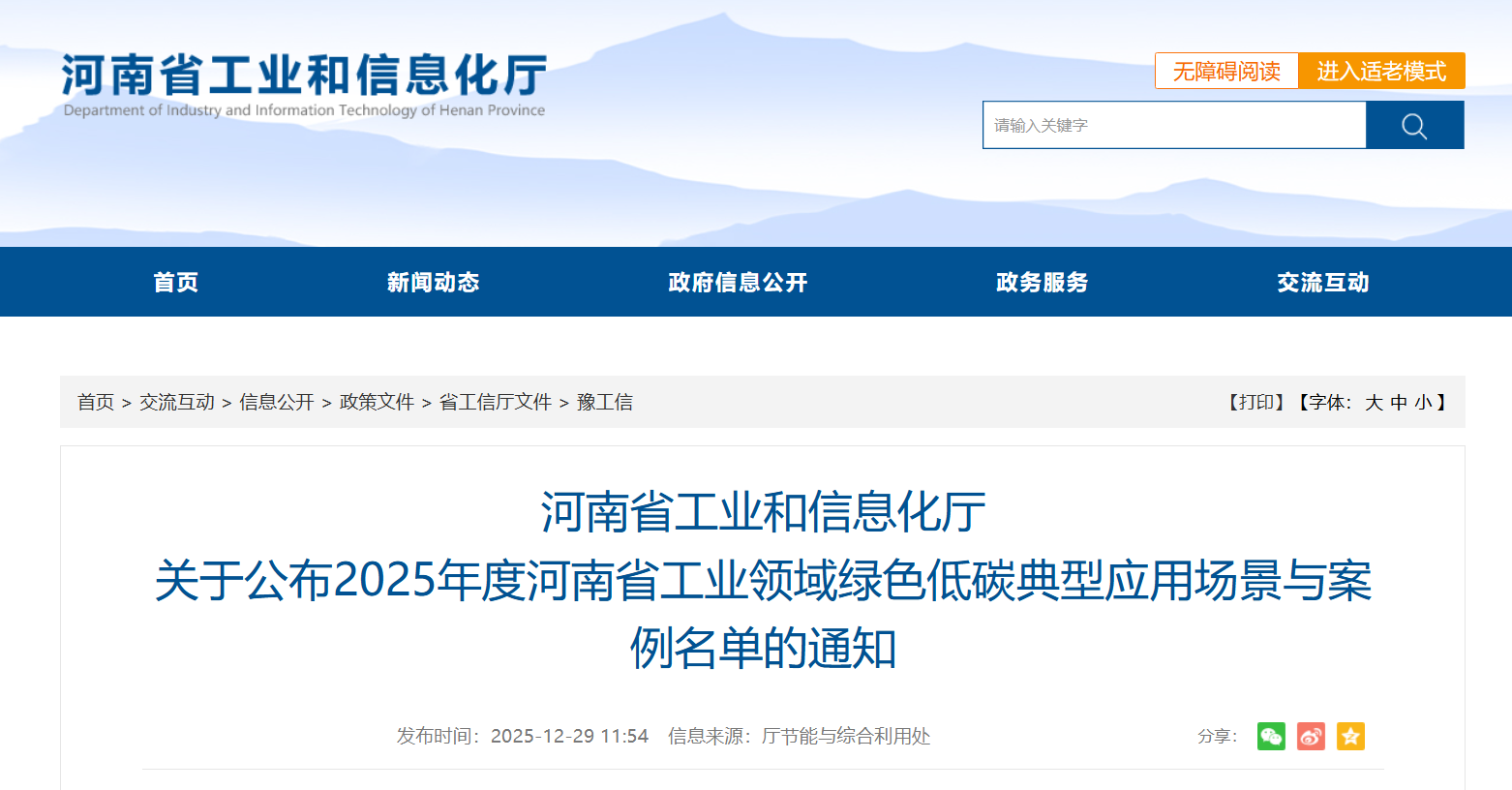 近日河南省工业和信息化厅公布《关于公布2025年度河南省工业领域绿色低碳典型应用场景与案例名单的通知》鹤壁市恒力橡塑股份有限公司的“数字化能碳管理中心”成功入选2025年度河南省工业领域绿色低碳典型应用场景与案例。
