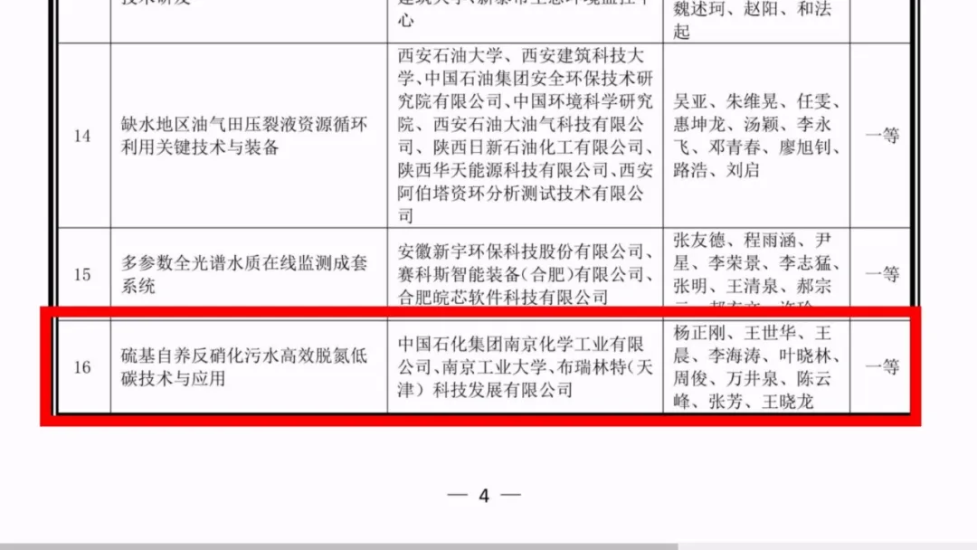 中国石化集团南京化学工业有限公司“硫基自养反硝化技术”获评全国环保科技一等奖